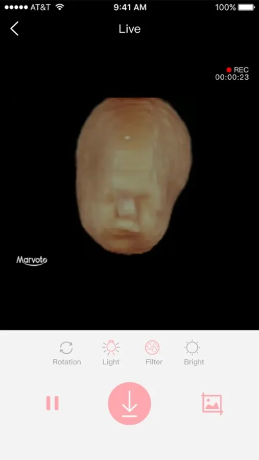 The “Fetus Camera” APP is the companion application software of “Fetus Camera” product self-developed by Marvoto Company. It is used to receive and display real-time two-dimensional videos and three-dimensional videos of babies in pregnant belly taken by “Fetus Camera” product. This is the first photo of life in true sense of each baby.