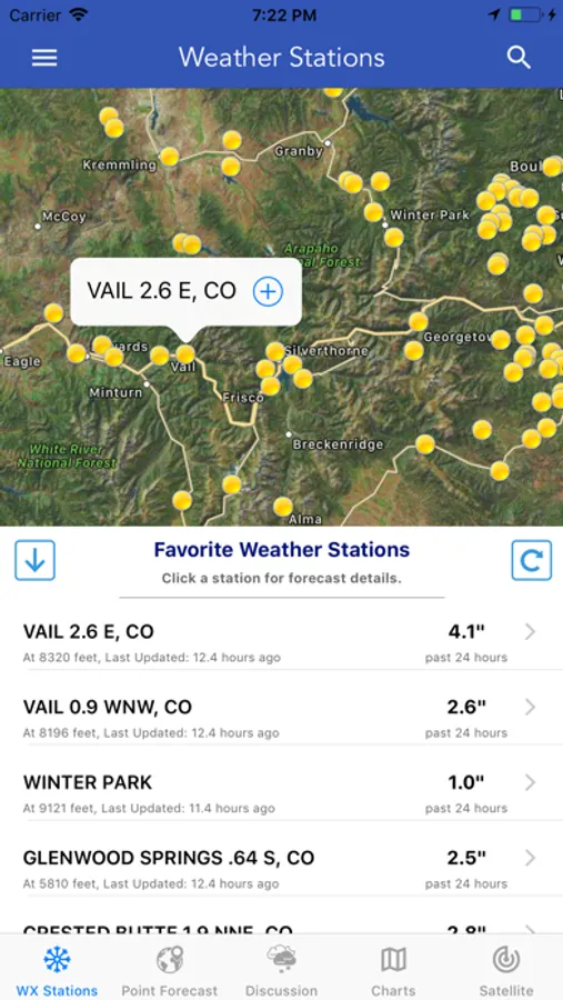 Simply tap any point on the map for a spot specific snow and weather forecast.
