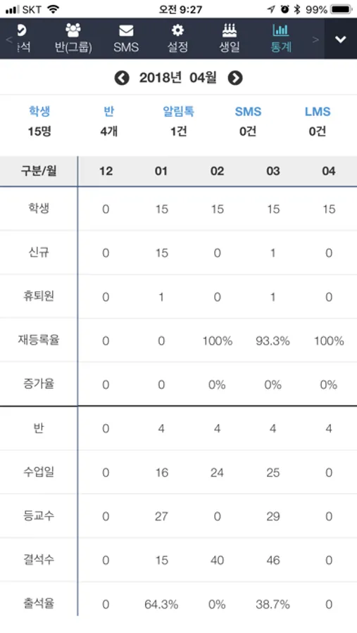 - 출석율까지 꼼꼼하고 체계적으로 관리
