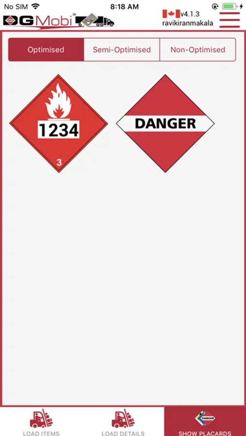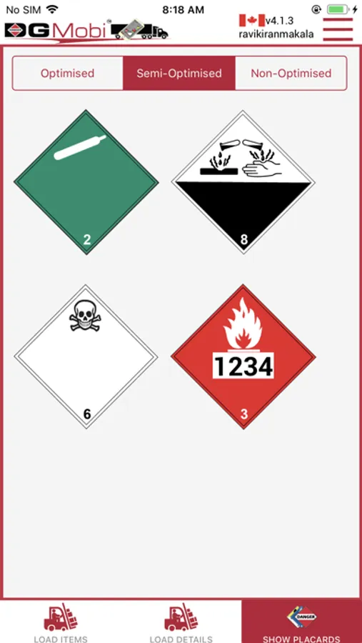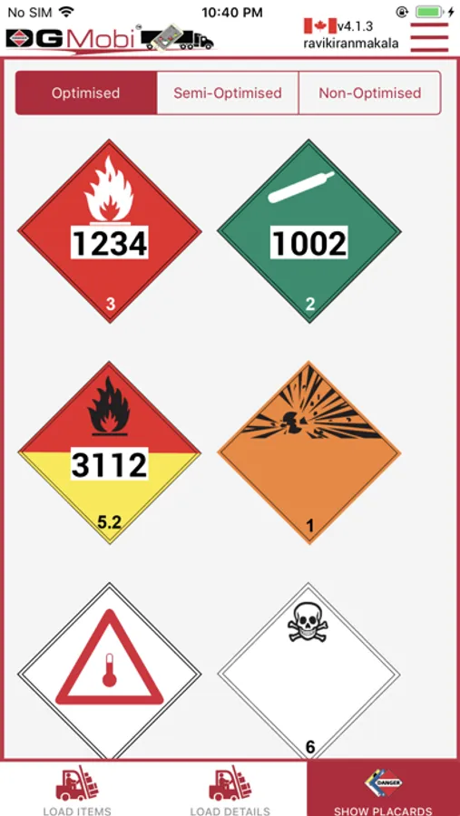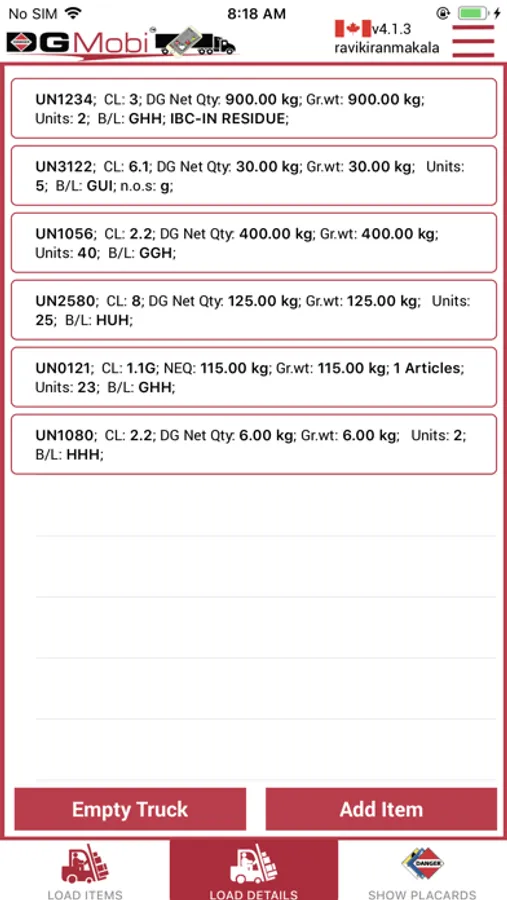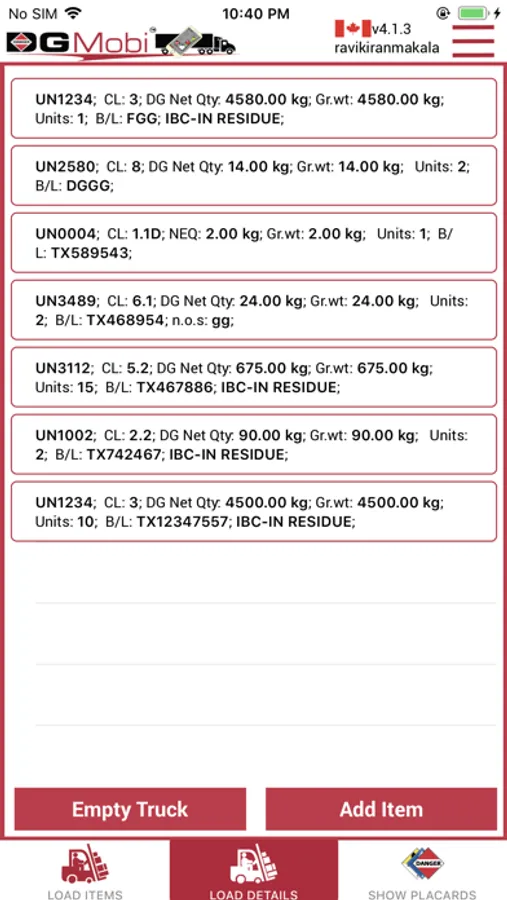 At each pick-up and drop-off system, enter or remove the load and DGMobi recalculates placarding