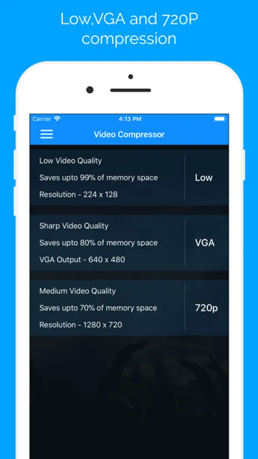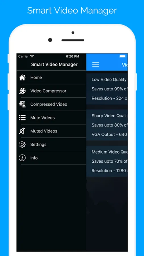 It is really easy process to compress the videos with this app. Just pick your video from your photo library and resize it to make a final video in less size and save memory on your mobile.