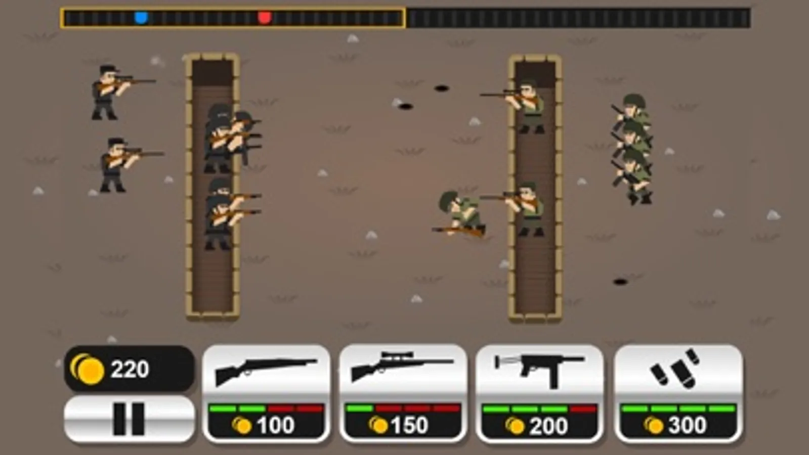 Take to the battlefield and defend your trenches ! This game features some fantastic strategy elements and battlefield gameplay. You control an army of tiny soldiers and must progress across the battlefield to engage the enemy and take control of the trenches. You can choose from a rifle soldier, a sniper, a machine gun soldier and a devastating mortar attack. – can you lead your tiny soldiers to victory?