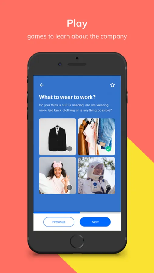 Scroll through the app to get to know your new company directly from you phone: engage with your future colleagues, tour your future office, learn all those tips and tricks that will make you arrive at your first day nerves free and ready to roll!