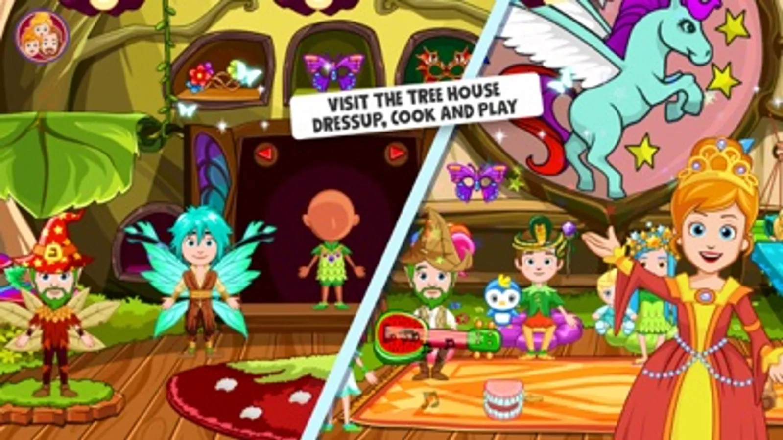 Little princess fairy forest dollhouse game has everything kids love. First we don't have any rules in the game, what kid likes rules? The game is pure imaginative fun, your kids will have a blast playing with this amazing digital dollhouse set. Dressup the little princess and the fairies with lots of different clothing and costumes. Enjoy artistic and creative play elements. Guaranteed hours and hours of pure fun.