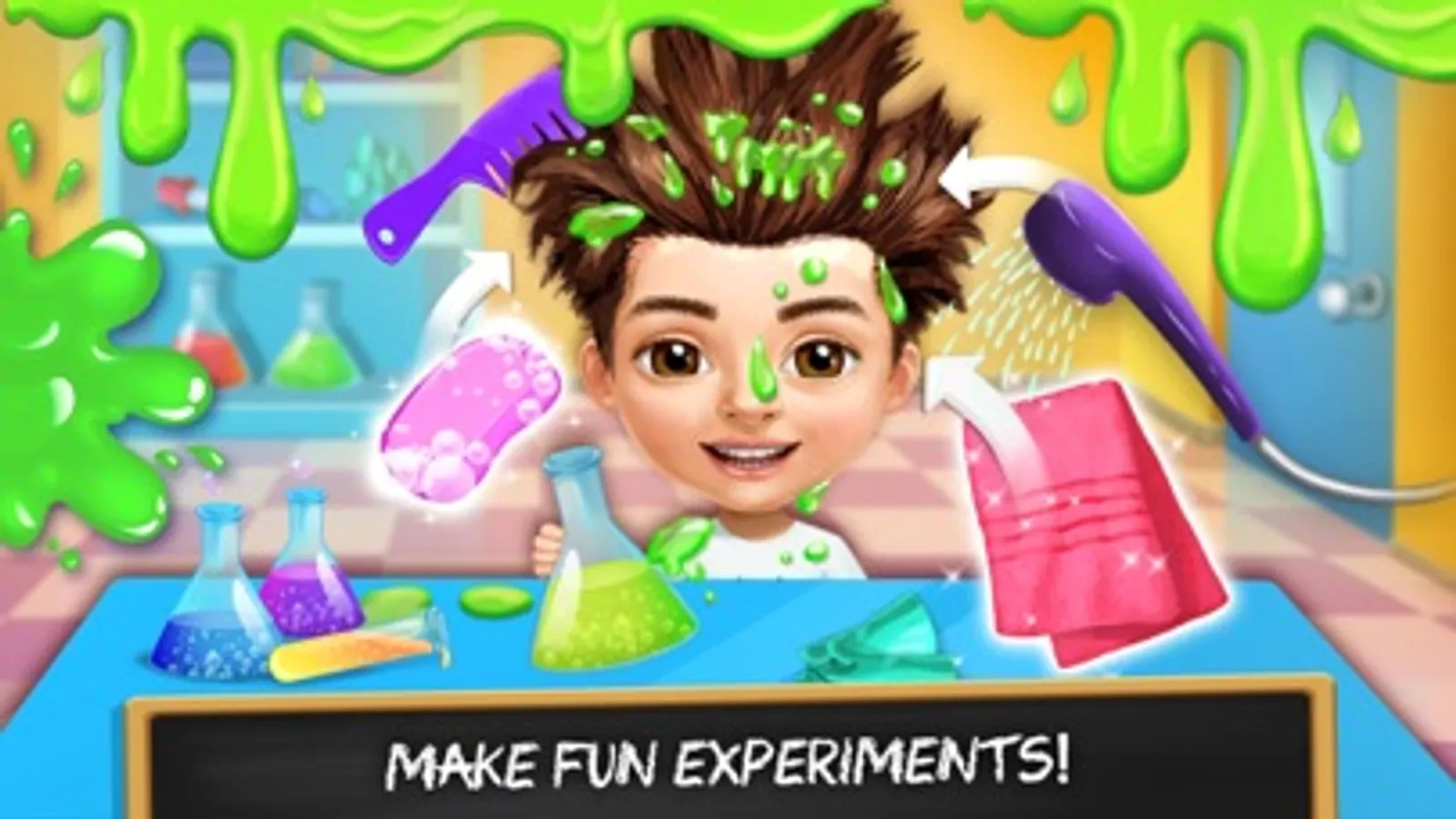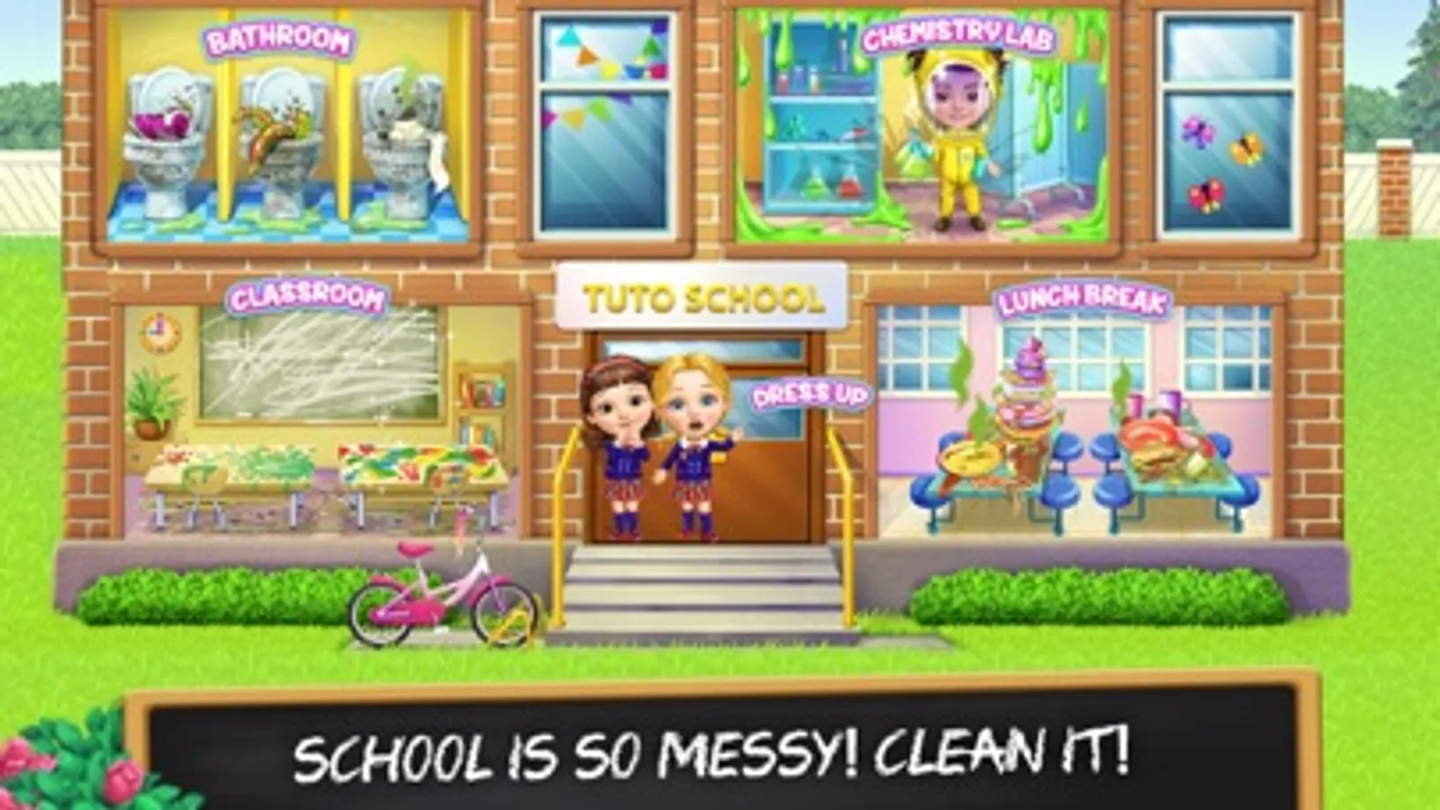 Play super fun school cleaning games for at TutoSCHOOL with sweet girls Chloe and Katie and their friend Justin. Clean up the messy school: observatory, playground, bathroom, classrooms and chemistry lab. Do your best and make the school shine again!