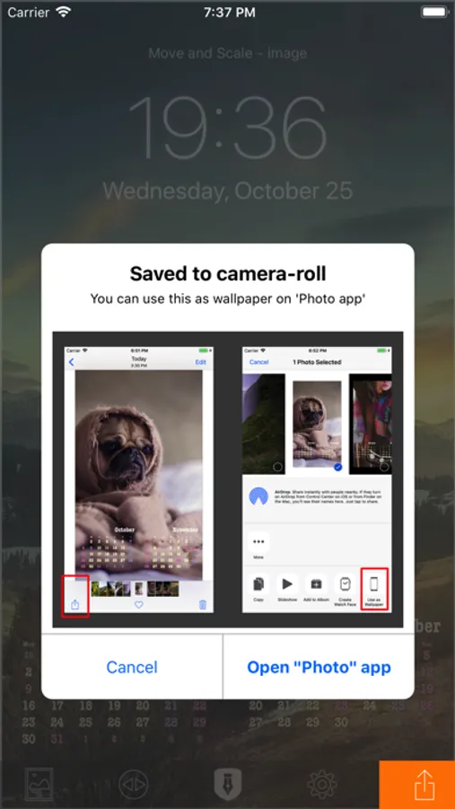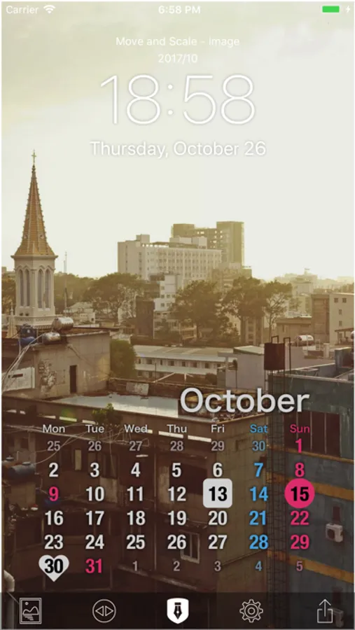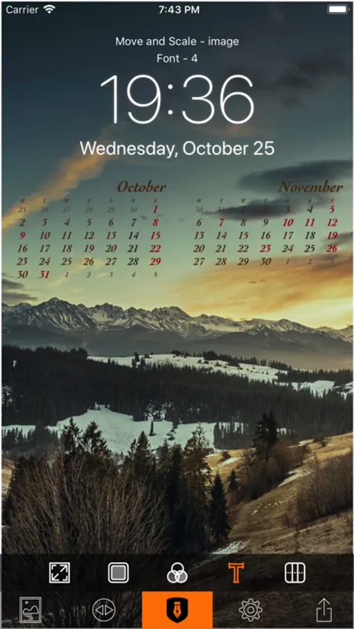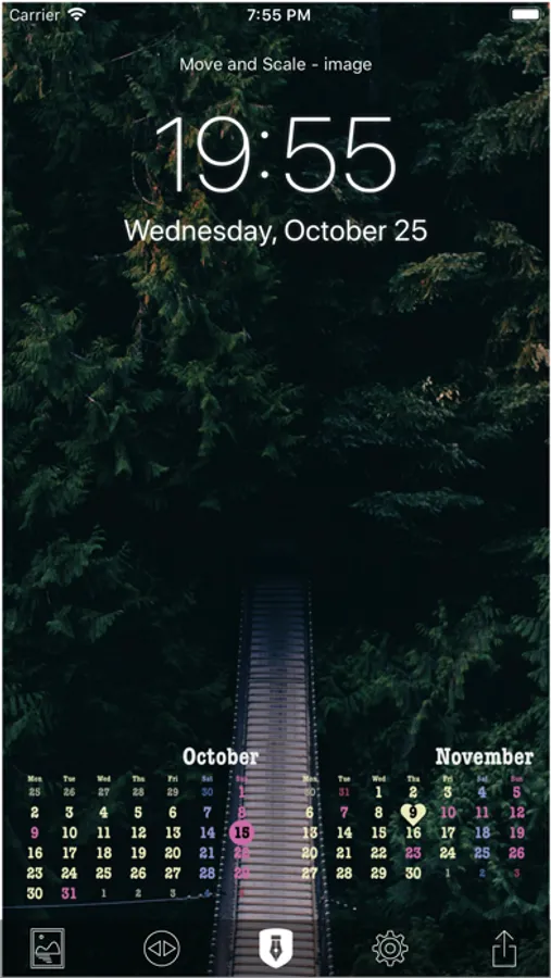 You can quickly make a wallpaper with calendar marked on the important dates with the Calendar-app datas. You can design the layout, letter color and font of calendar fitting to the photo.
