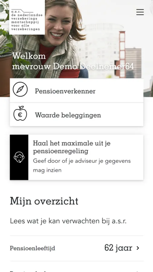 • Je ziet je verwachte pensioenbedrag bij a.s.r.