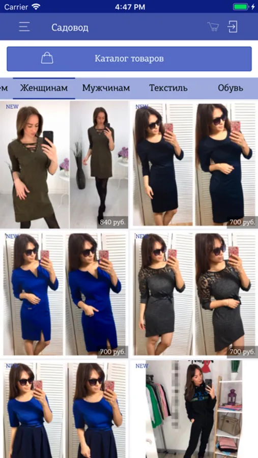 каталог с фото и информацией о наличии товара;