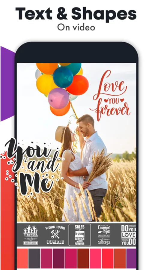 Add text to your photos , fonts, stickers, colors and gradients and make an awesome custom video to share with your friends.