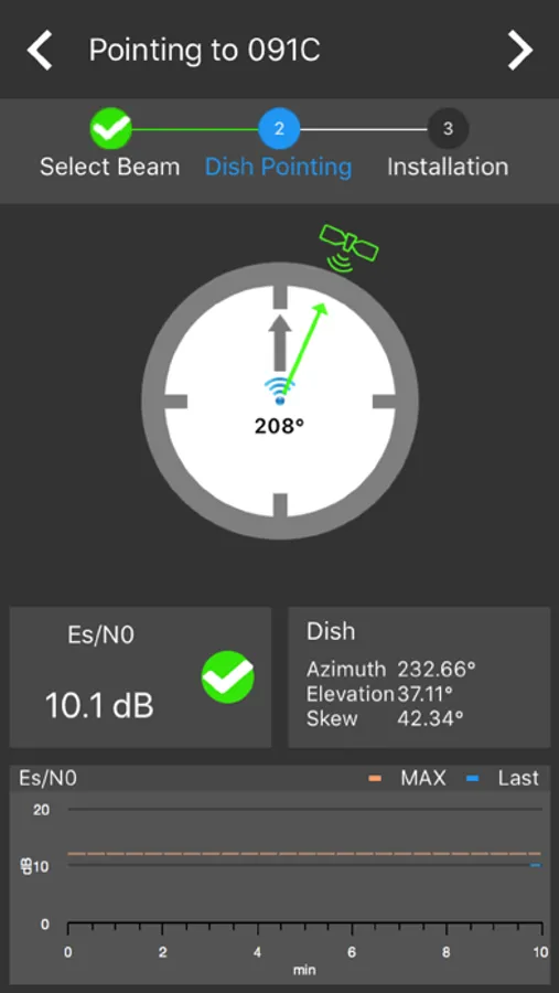 The application can be used to assist in installing and configuring SkyEdge II-c CPEs made by Gilat Satellite Networks Ltd using a smartphone. The application provides a complete solution for the CPE installation process, from the choice of a suitable beam spot before the installation to the verification of the signal strength during and after the installation.