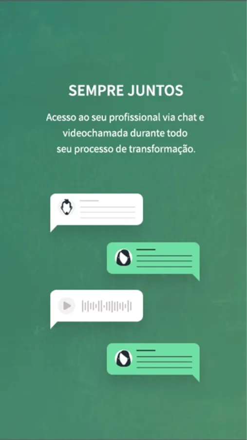 Você poderá escolher entre utilizar o app ou nosso site para realizar sessões de videochamadas e também trocar mensagens de texto, áudio, imagem e vídeo sem precisar agendar horário via chat.