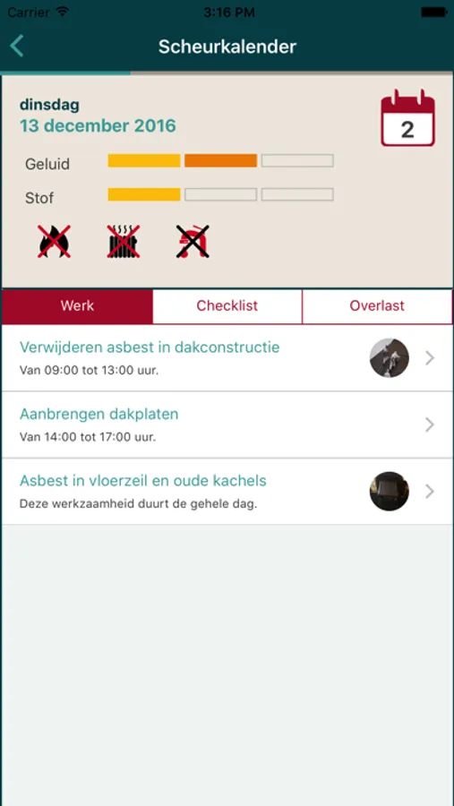 Weg met het papieren boekje die u kwijt kunt raken. Nu alle informatie over uw renovatie of groot onderhoud vertrouwd bij u op de telefoon of tablet. Blader bijvoorbeeld door de scheurkalender om te zien wat er gaat gebeuren, wat u kunt doen om de mensen van de bouw het gemakkelijker te maken of welk overlast u kunt verwachten.