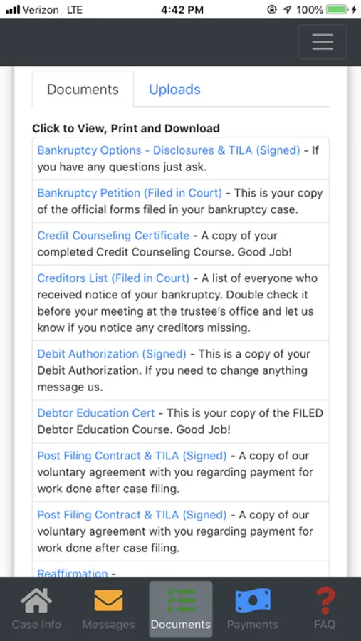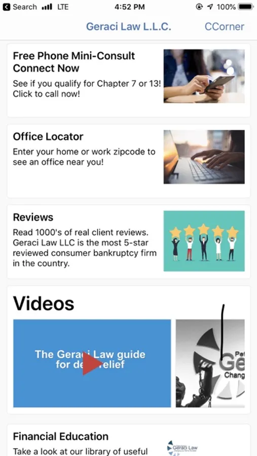 The Geraci Law app provides bankruptcy information to the public, and services to its clients: