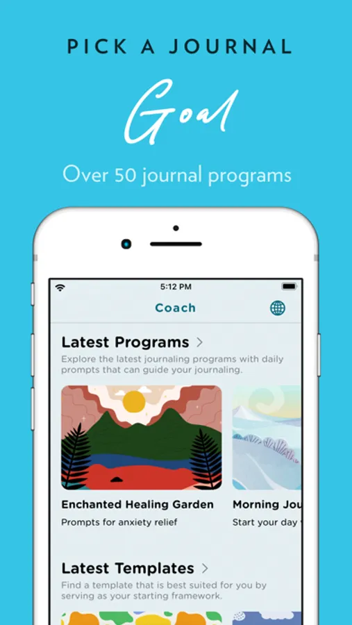 Breeze through journaling with more than 60 curated journaling programs from topics such as self-confidence, to boundary-making and practicing mindfulness. Kick-start your reflections with templates that have thought-provoking prompts and questions.