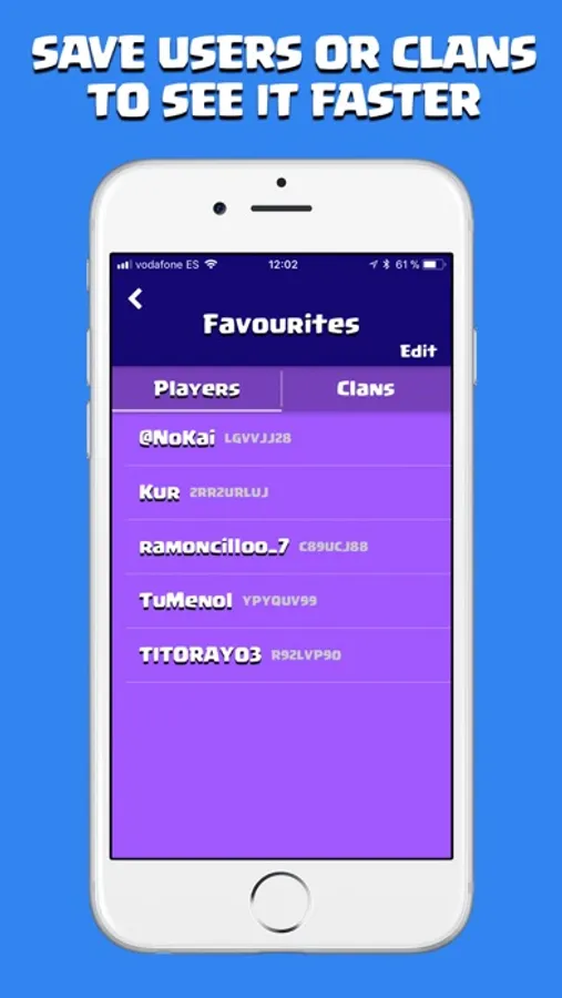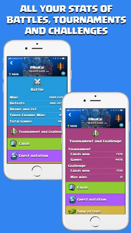 Save users or clans to see their statistics at any time. You only need to know your tag the first time, then the application will take care of quickly accessing your profiles.