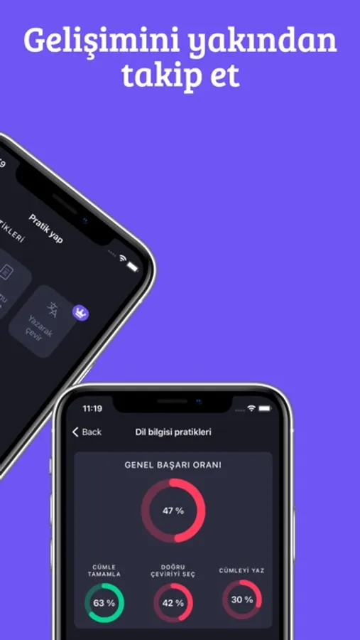 * Genel başarı durumunu takip edebilir, geçmiş test sonuçlarını görebilirsin.