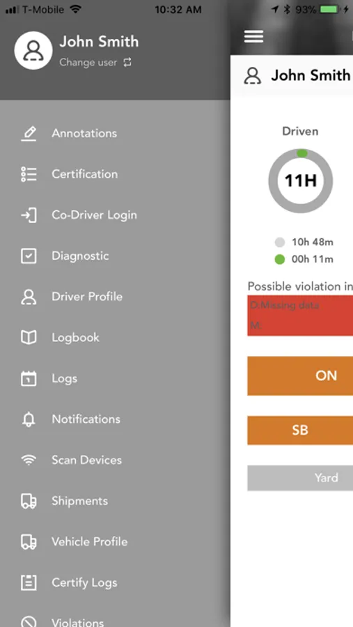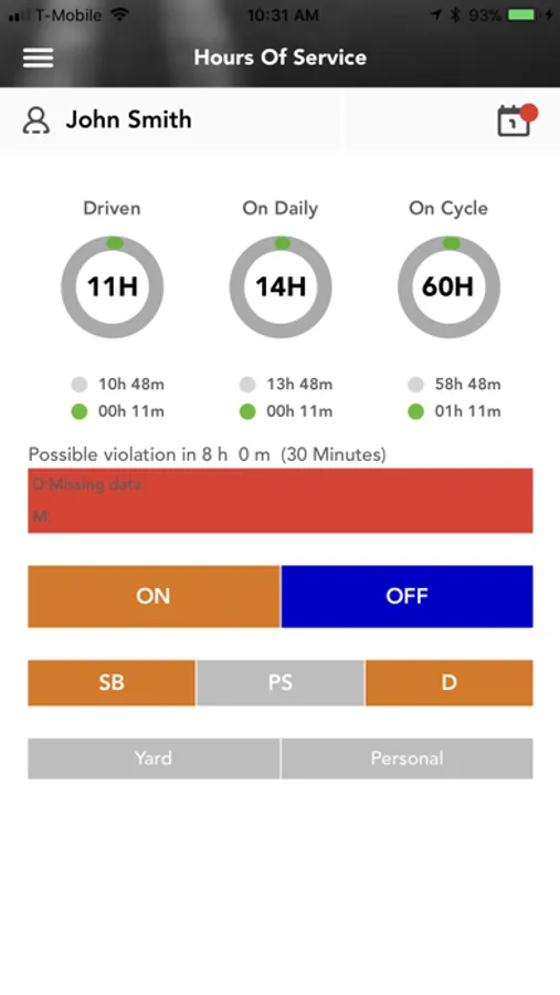-Mobile device permits duty status changes only when the vehicle is at rest