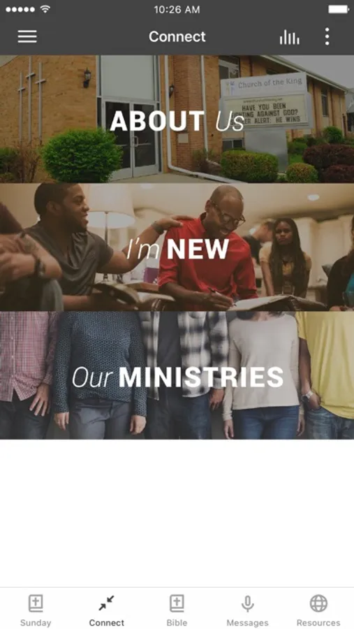 We hope you will find this tool helpful for getting to know more about Church of the King, but more importantly, we hope it will be useful in helping you know God. We believe God made all of us for relationship and that is why we talk so much about "Connection." God wants us to have healthy relationships with people around us and with Him. This app was designed for those who want to explore Church of the King from a distance as well as for those already fully engaged in what God is doing.