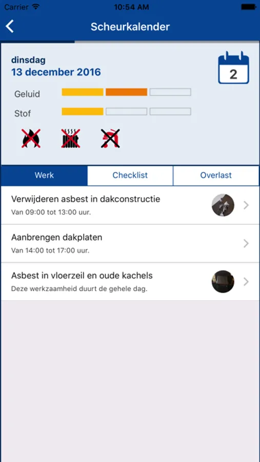 Weg met het papieren boekje die u kwijt kunt raken. Nu alle informatie over uw renovatie of groot onderhoud vertrouwd bij u op de telefoon of tablet. Blader bijvoorbeeld door de scheurkalender om te zien wat er gaat gebeuren, wat u kunt doen om de mensen van de bouw het gemakkelijker te maken of welk overlast u kunt verwachten.