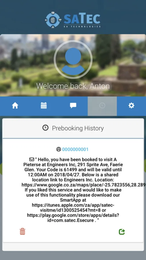 The SATEC VisitMe app focuses on making it easier for residents to pre-authorise visitors who visit them at their complex or estate. The user-friendly app allows residents to request a PIN code by selecting the visitor from their phone book. A PIN code is generated within the app and can be shared by the resident via Whatsapp, SMS or email. A google maps location link is included in the message to direct your visitor exactly where to go. The resident will receive a notification when the visitor enters and leaves the premises. Notifications are stored within the app with basic personal information including visitor name, surname and photo of the visitor. This gives you absolute control over your visitors, delivery companies and contractors.