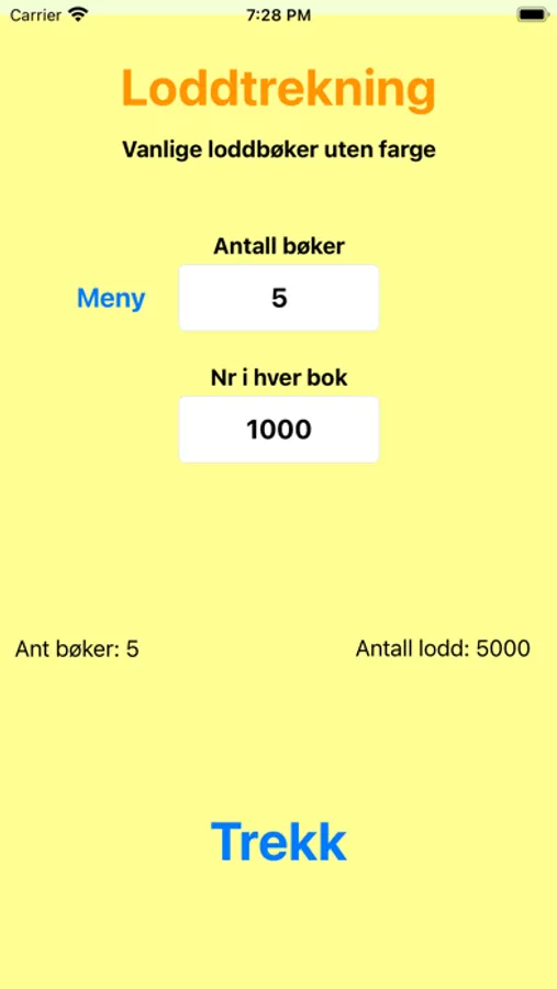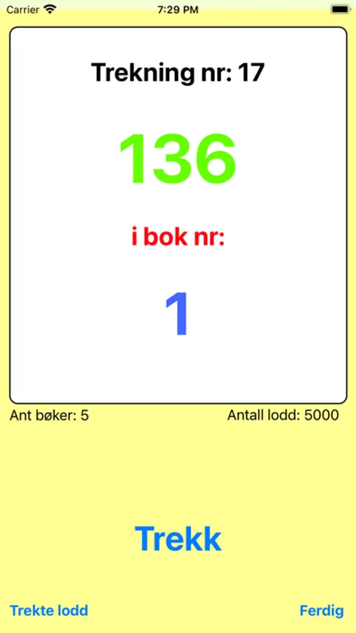 Etterpå kan du legge inn antall solgte lodd i hver bok slik at du KUN trekker blant de solgte loddene. Altså ingen bomtrekninger!