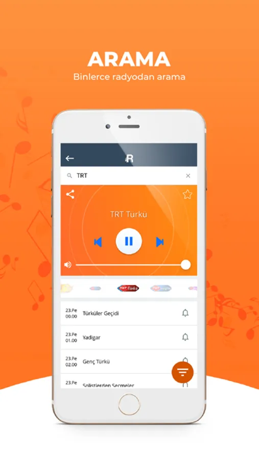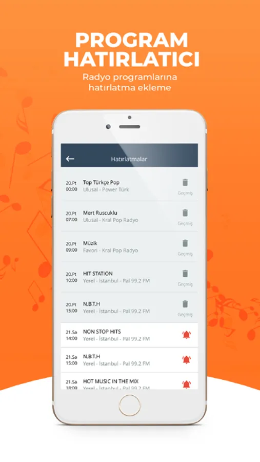 Radyoların sağladığı yayın akışlarını uygulamamızdan takip edip, hatırlatıcıya ekleyebilirsiniz.