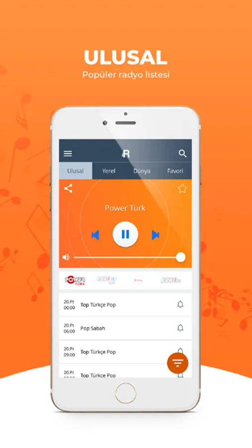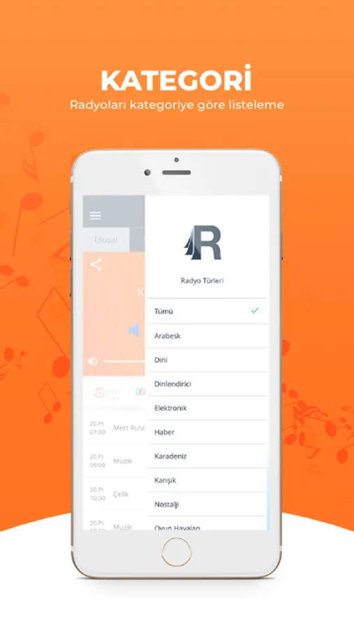 Ayrıca ulusal, yerel ve dünya radyoları olarak sınıflandırdığımız ekranlarda gezinebilir, listelerdeki radyoları kategorilerine göre azaltabilir ve modunuza en uygun radyoyu bulabilirsiniz.