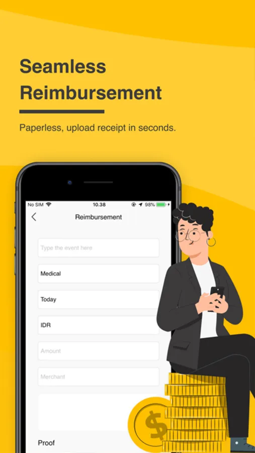 4. Hadirr presents reimbursement feature. This feature helps HR and finance division to manage employee reimbursement. Employee can upload proof or receipt whereas HR and finance can coordinate to approve and pay the reimbursement.