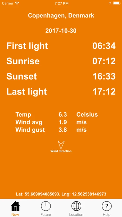 How about sunrise in a month from now? no problem, use the future menu and select any date.