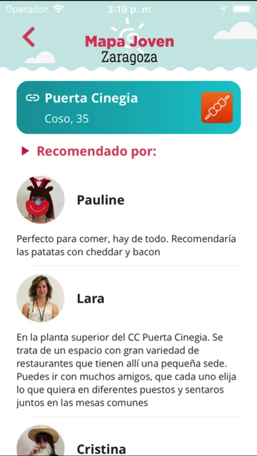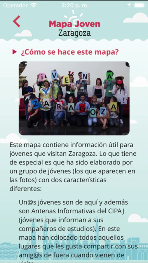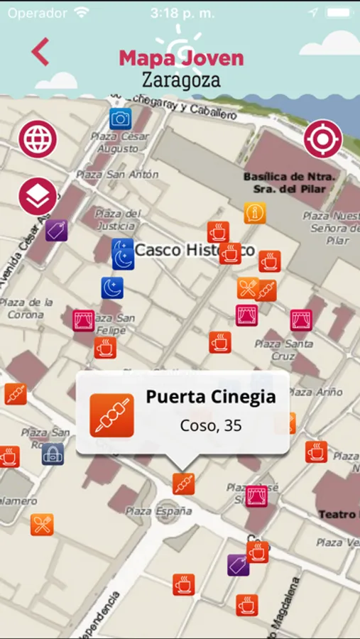 This app, developed together by The City Council and the University of Zaragoza, includes useful information for young people to enjoy Zaragoza. The most special feature of this app is that is made using a collaborative map elaborated by the young people that appear in each point marked on the map (www.zaragoza.es/juventud).