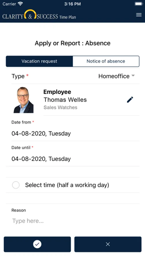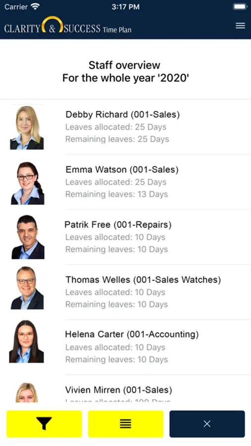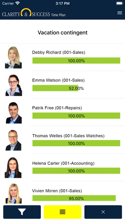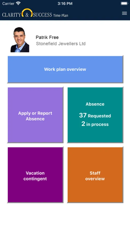 Jewellers and their employees have the ability to use the app to view work schedules / shift schedules created with CLARITY & SUCCESS, create a leave request (e.g., for vacation), view the vacation account, view an absence overview table (e.g., vacation list), and view an overtime account. The app integrates easily with CLARITY & SUCCESS's existing jewellery management software by communicating with the mainframe via Wi-Fi or over the Internet.