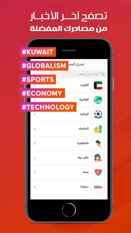 تطبيق هام يأتيك بمصادر إخبارية من السعودية، مصر، الكويت، قطر، الإمارات، البحرين، فلسطين، الأردن، المغرب، تونس، ليبيا، اليمن، لبنان، سوريا، عمان، العراق، السودان ومصادر عربية وعالمية أخرى