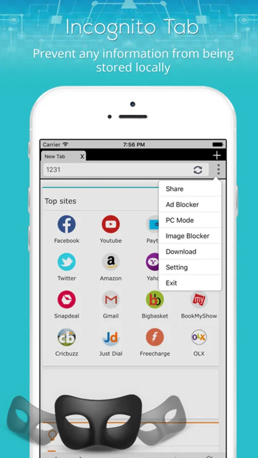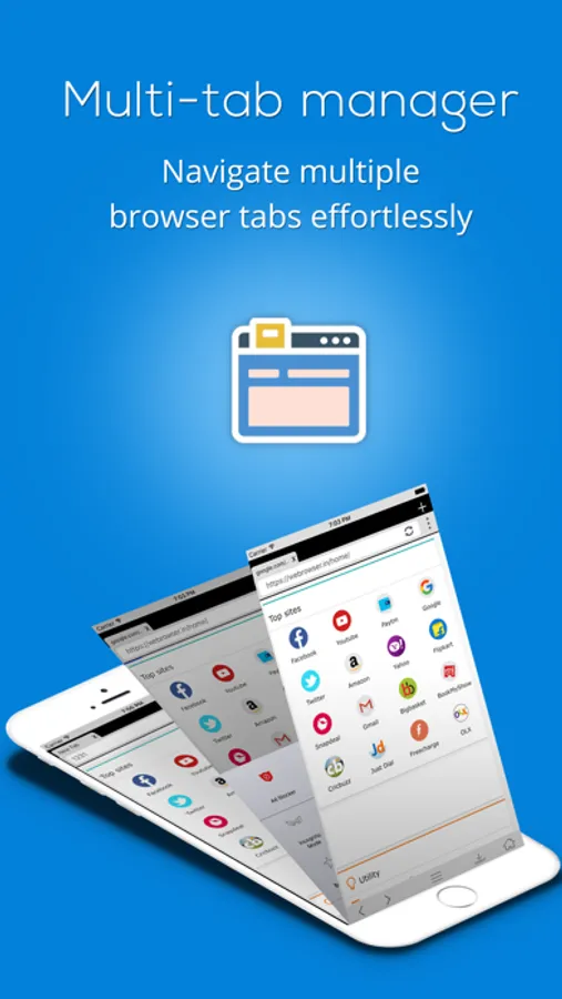 • Multi Tabs : It displays your open tabs, and lets you switch between them by swiping. Let you browse the web as PC Browser & desktop browser.