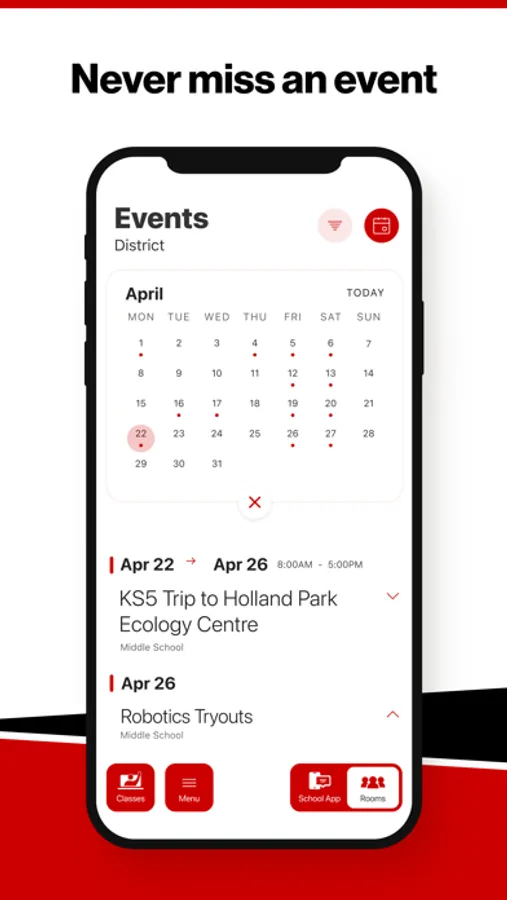 Select your student’s organization within the app and make sure you never miss a message.