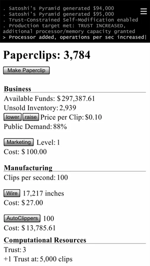 Become a super-powerful AI who only wants one thing: paperclips. Use your unstoppable intelligence to create a massive paperclip empire in this addictive idle/management/strategy/sim.