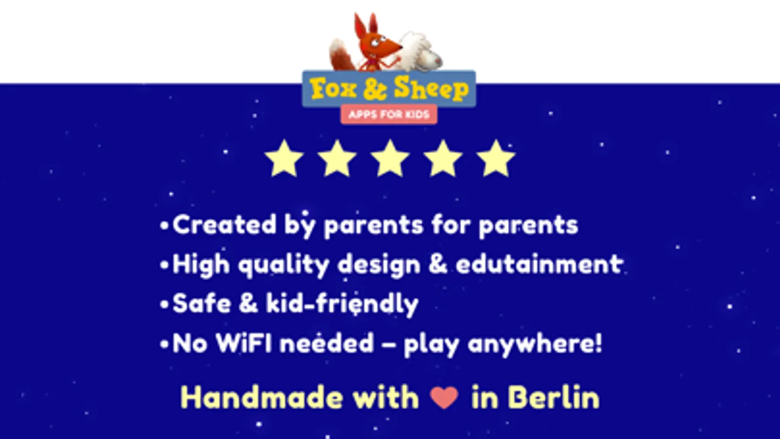 We are a Studio in Berlin and develop high quality apps for kids at the age of 2-8 years. We are parents ourselves and work passionately and with a lot of commitment on our products. We work with the best illustrators and animators around the world to create and present the best apps possible – to enrich the lives of our and your kids.