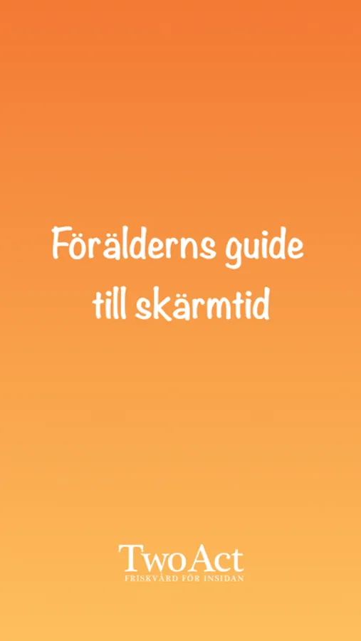 Twoact Skärmtid är framtagen som en föräldraguide till skärmtid för föräldrar som känner oro eller vill ha stöd kring sina barns skärmtid.