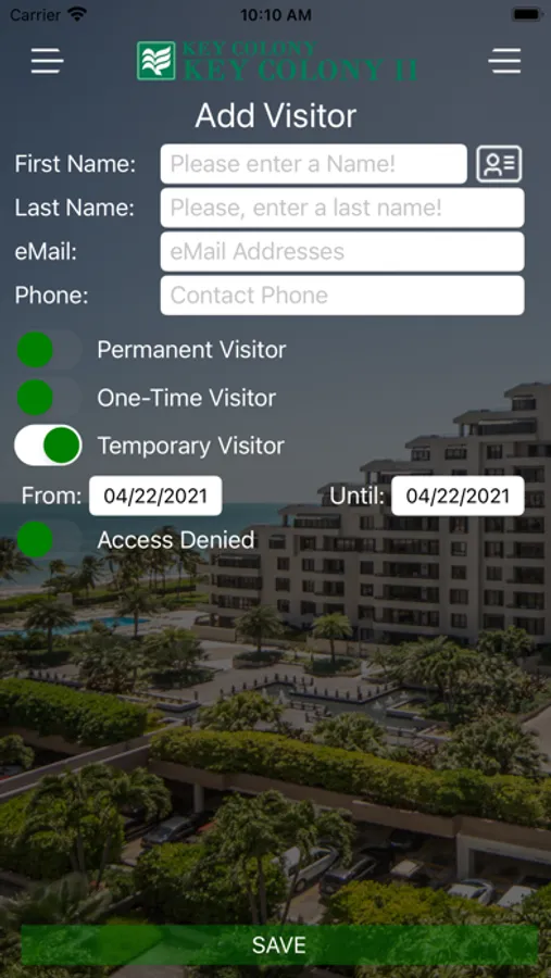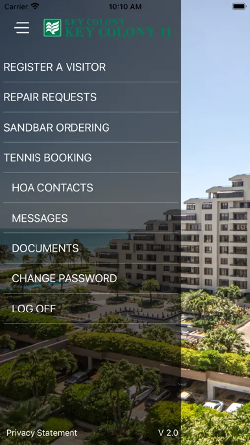 Key Colony is your private gate to your very own residence, wherever you might be. Access your Facilities Reservations, Concierge, Front Desk and Repair Requests, control Visitors Access, view and accept Delivieries, keep in touch thru our Internal Messaging System, all thru your iPhone or iPad, no matter where you are.