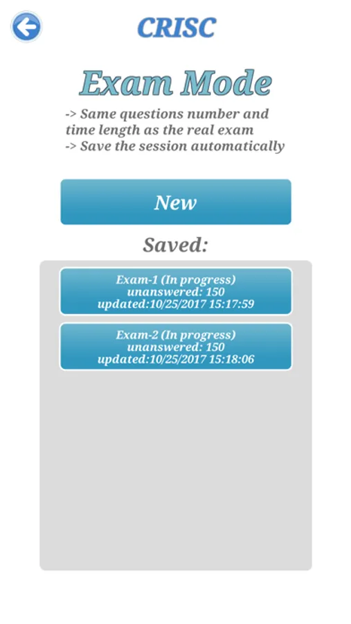 - The app will save your practice/exam automatically, so you can continue your unfinished exam anytime