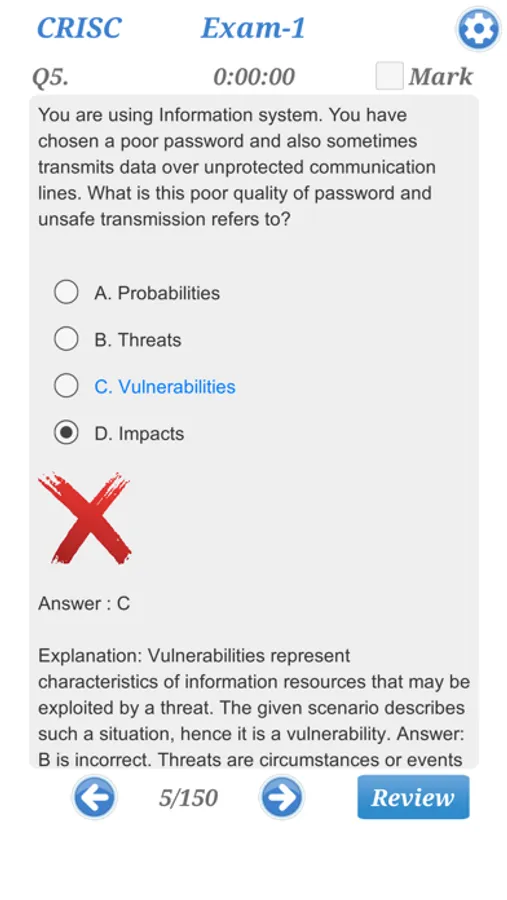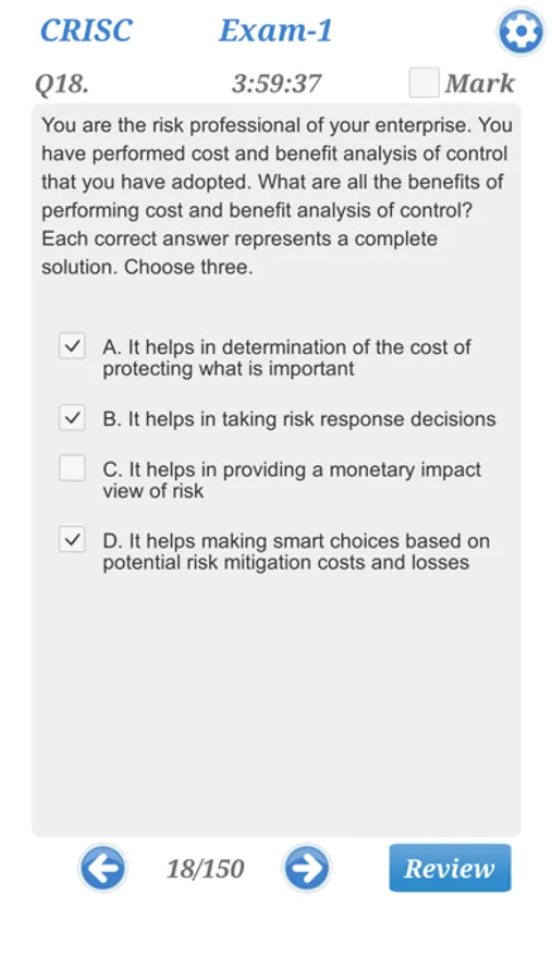 - Easily go back to the questions which you want to review again with "Mark" and "Review" features