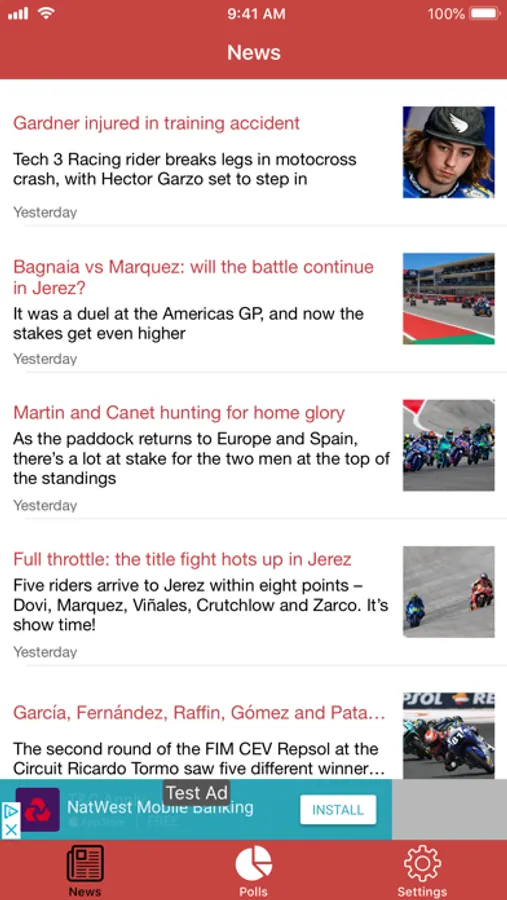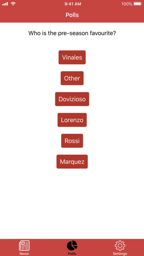 Your go-to news app for MotoGP, complete with live polls. Get notifications for when a new poll is released - who is going to win the next race, was the incident in the previous race fair? Find out here!