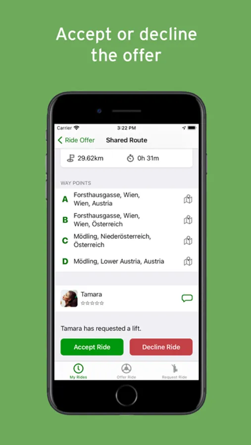 Just post your ride offers or ride requests and you'll receive a notification once a suitable match (driver or passenger) was found.