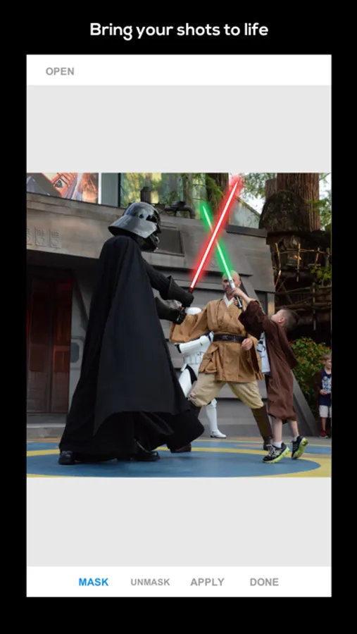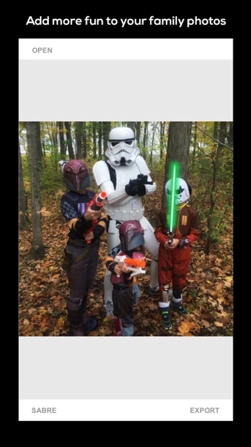 Quickly and easily add customized glowing sabre effects to your favourite toy, cosplay, or halloween photos! Or just add it to any photo for fun! Choose from a select set of starting effects, but then customize your own versions by changing the size or colours and save them for future use. Use it for sabres or swords or laser blasters - anything you want.