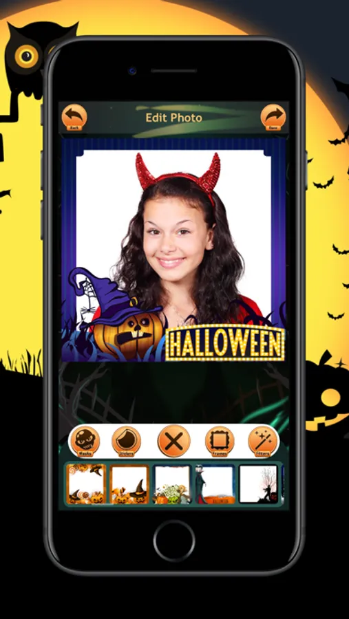 Super spooky photo editor with photo labels to celebrate the Halloween season. Take a picture of you and your friends and customize your photographs with scary photo filters and frightening photo frames. Wait no more download these scary photo frames for Halloween.