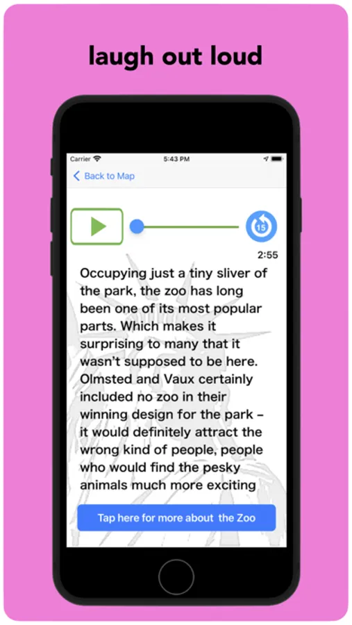 Immerse yourself in the story of Central Park. Get out of the tour group crowd and go beyond the sights that everyone sees. Uncover the Park's secrets and laugh at stories you never imagined possible. Discover how Fredrick Law Olmsted and Calvert Vaux re-designed and re-built nature, Robert Moses with his mania for the perfect grass, here how the Booth brothers’ disagreement about the Civil War impacted the Park, root for the errand-boy Philip and his unwelcome DIY Zoo project and explore a beloved children’s author’s fears of house fires, dogs and being buried alive. And along the way, explore the crazy plans for the Park that thankfully never came to be, the airport, the WWI battlefield, and the giant pyramid. We give you the who, what, why, where and when of the city’s best-known sights and the unfamiliar places in between. Experience the real New York, at your own pace and on your own terms.
