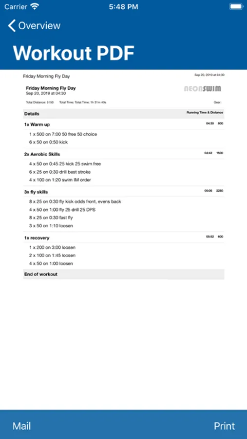 The app is great for coaches of all levels. It is the fastest and most intuitive swim workout creator ever. With a single tap, coaches can create, print and share PDFs of their workouts. These PDFs are great for swimmers, and provide an easy way for them to read, understand and perform the workout.