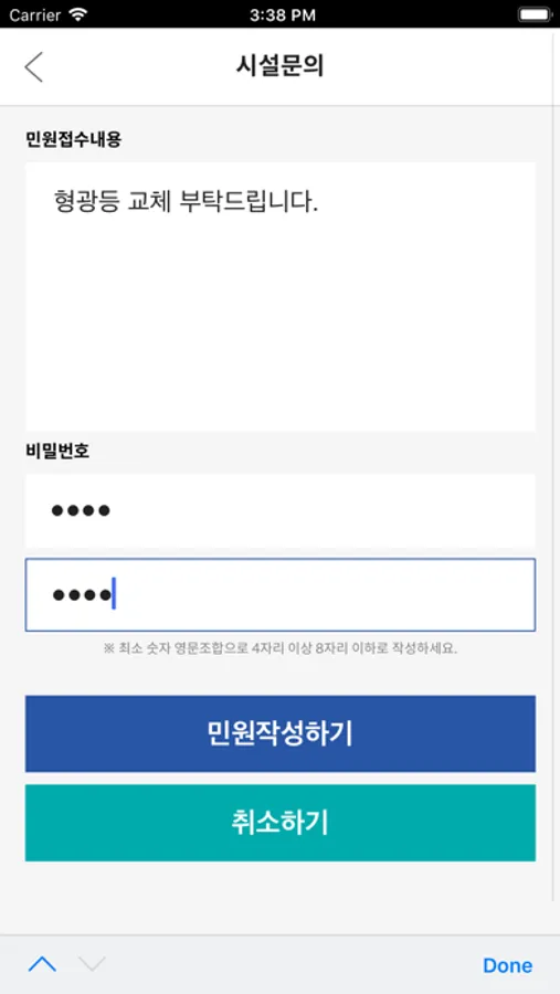 시설민원 접수 부터 처리내역 확인까지 가능한 '시설민원' 접수 기능