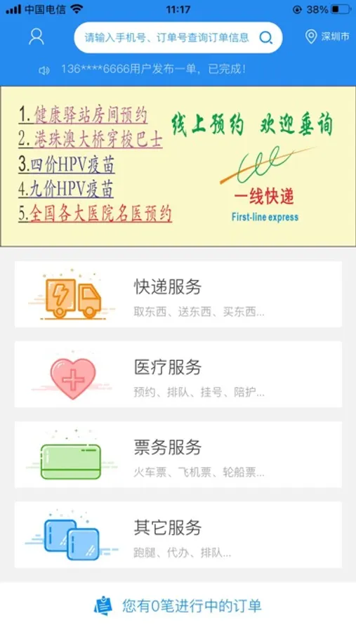 新用户通过下载APP,微信公众号(一线快递),官网(www.yixian-express.com)进行下单,首次体验,即可获专享38元优惠券。