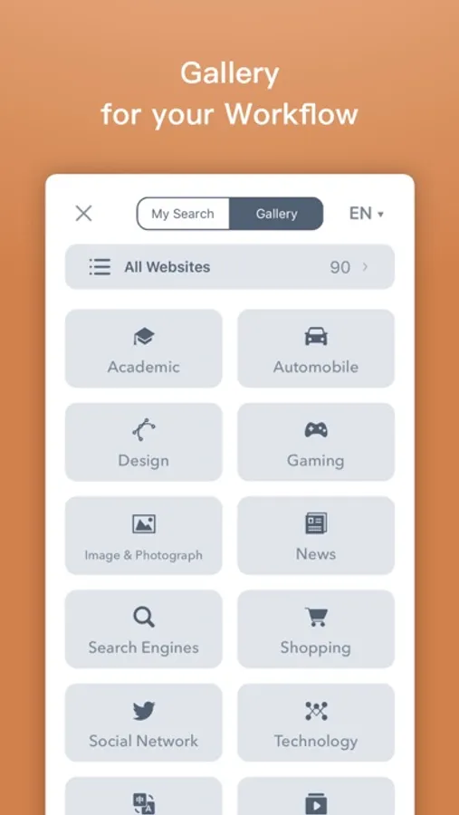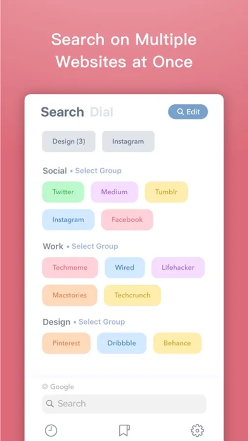 Explore awesome websites in different categories, save your favorite websites as your own search sources.
