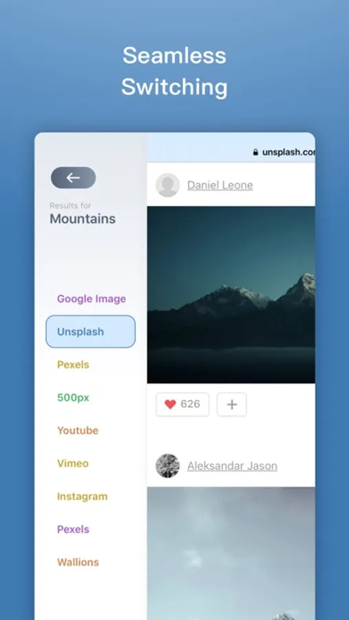 Search directly on your trusted websites with your favorite Safari view, switch between different sources with swipe and tap.